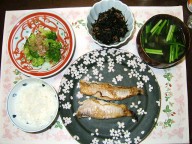 | 8月15日という日はいろいろな思いで迎える日です。 私も考えました。あついという思いは時として感覚を狂わせます。そうならないためにも、過去を振り返ることは必要かもしれません。 私の6週間も一応今日で終わりました。結果は上々。とはいってもこれからが問題です。細く長く日々励むという思いで今日からまた新しい出発です。 最近、自分に夢中で人のことに思いいたら無い事が多々あります。反省もするのですが、反面今は中休み少し自分を甘やかしてもいいかなと思ったりもするのです。今日の夕食は6週間ぶりの出来合いです。ただ煮物はだしをとって煮なおし薄味にしました。博多名産「おきゅうと」、生春巻き、ひじきの煮物、お煮しめ、うちの住人からお刺身を少々、カロリー的にはベストだと思います。 |